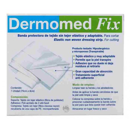 Dermomed Fix es una banda protectora de tejido sin tejer elástico.