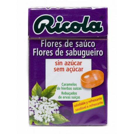 Ricola Caramelos Flores de Saúco son unos caramelos sin azúcar de hierbas suizas indicados para sequedad de garganta o pequeñas irritaciones por su efecto balsámico y calmante .